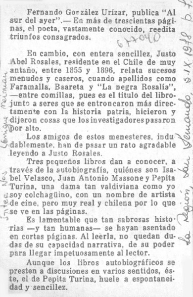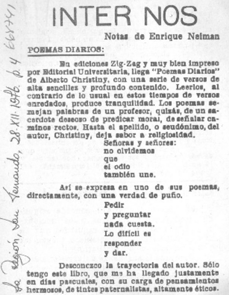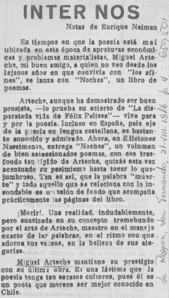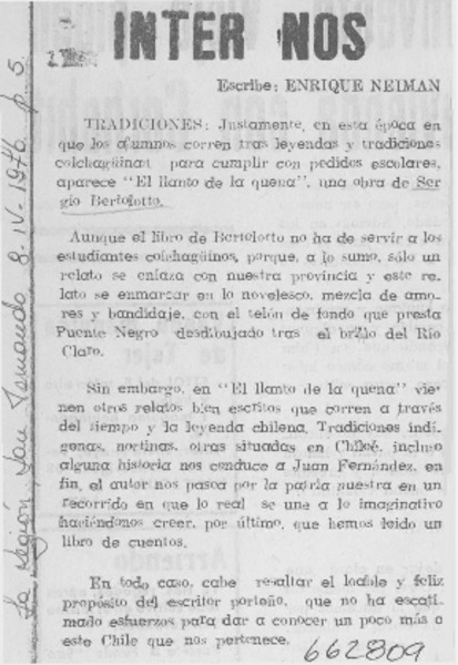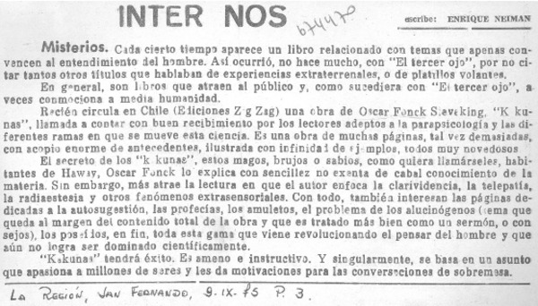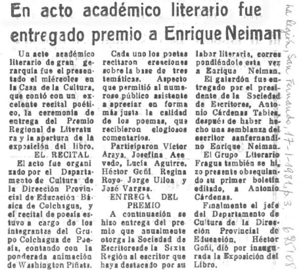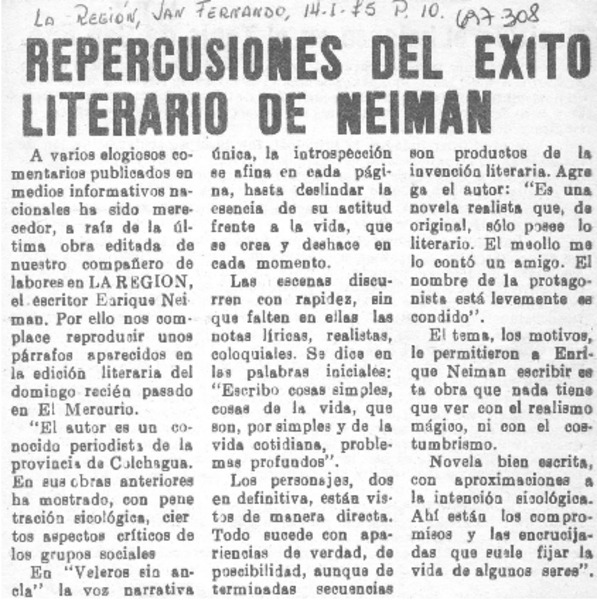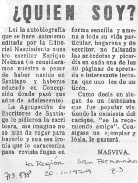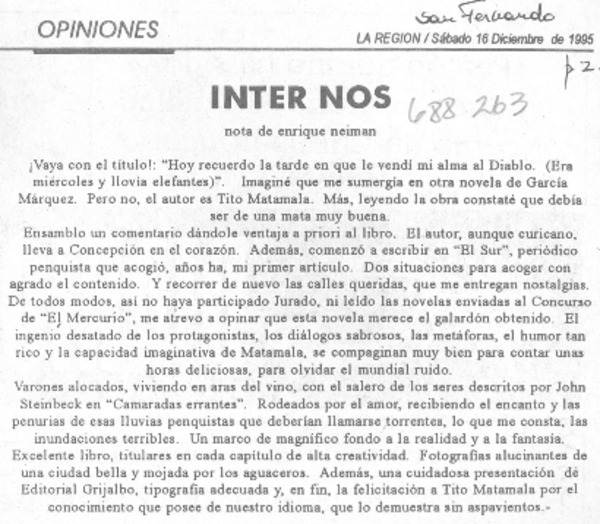 Autores chilenos - Entrevistas - Neiman, Enrique - Aquel San Fernando