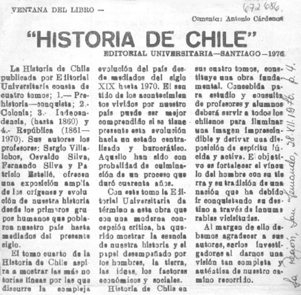 Situaciones y anécdotas de Chile expresa Gazmuri en su libro. [artículo]