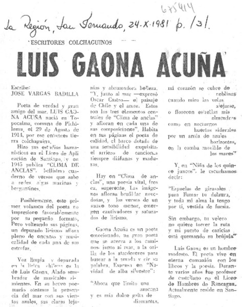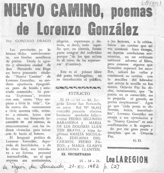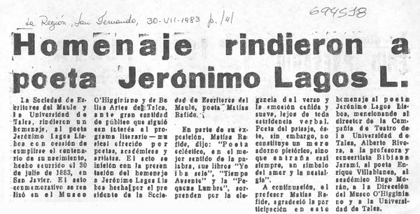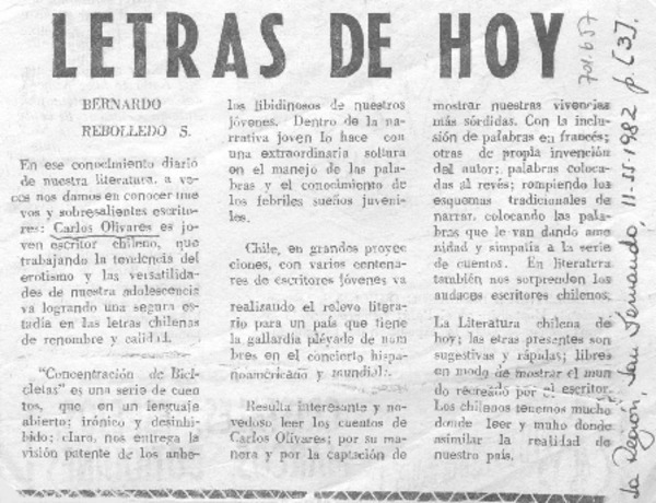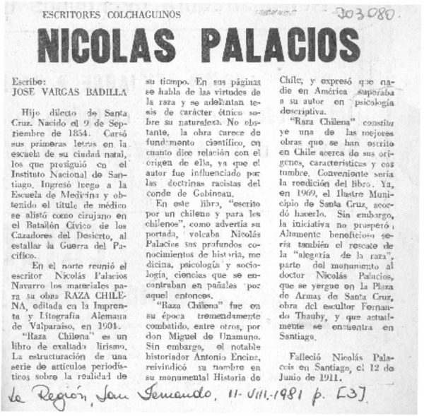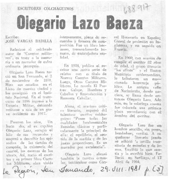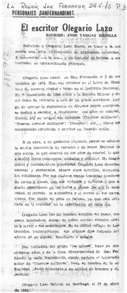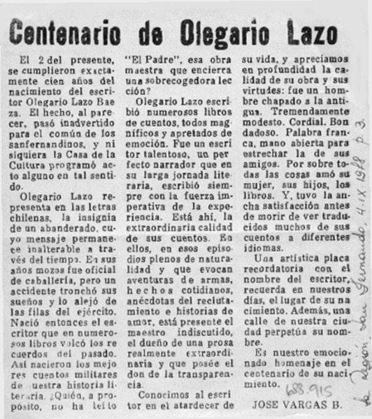 Centenario de Olegario Lazo [artículo] José Vargas Badilla.