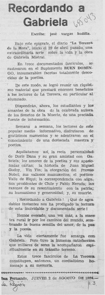 Recordando a Gabriela [artículo] José Vargas Badilla.
