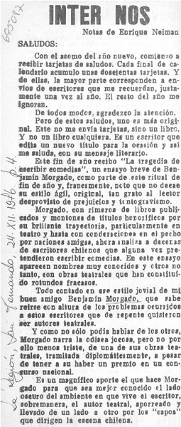 Autores chilenos - Morgado, Benjamín - Trajedia de escribir comedias