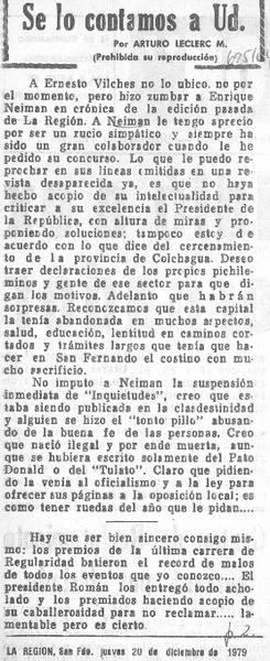 Se lo contamos a Ud. [artículo] Arturo Leclerc M.