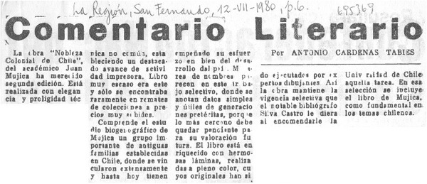 Comentario literario [artículo] Antonio Cárdenas Tabies.