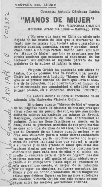 Autoras chilenas - Menares, María Cristina - Crónicas y leyendas