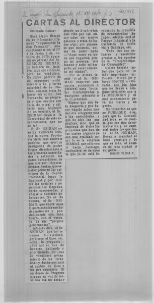Carta abierta al director de la Discusión [artículo] Enrique Neiman.