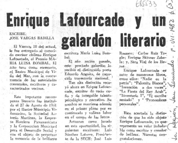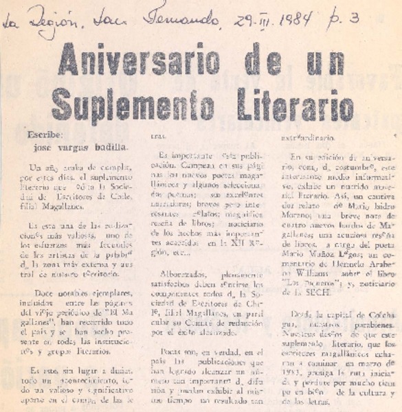 Aniversario de un suplemento literario [artículo] José Vargas Badilla.