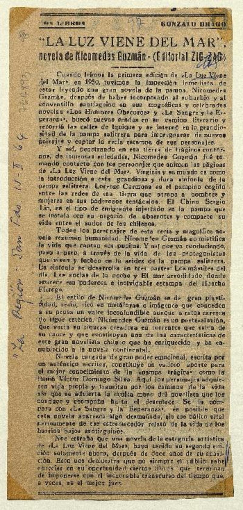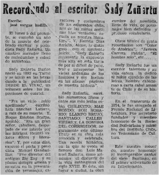 Recordando al escritor Sady Zañartu [artículo] José Vargas Badilla.