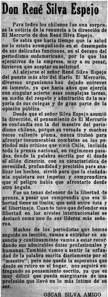 Don René Silva Espejo [artículo] Oscar Silva Amigo.