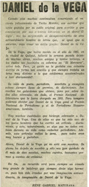 Daniel de la Vega [artículo] Rene Gabriel Maturana.