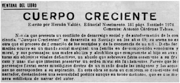 Autores chilenos - Valdés, Hernán - Cuerpo creciente