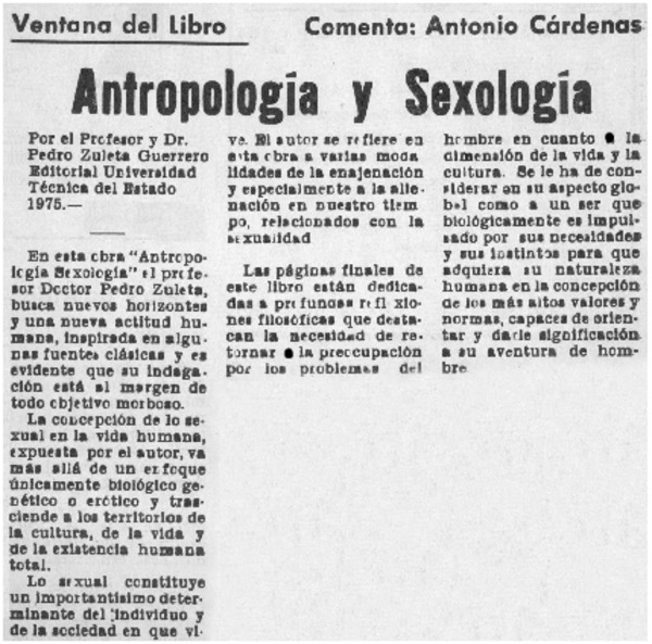 Antropología y sexología [artículo] Antonio Cárdenas.
