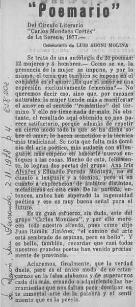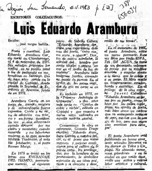 Alfredo Aranda: "Antología atacameña" [artículo] José Vargas Badilla.