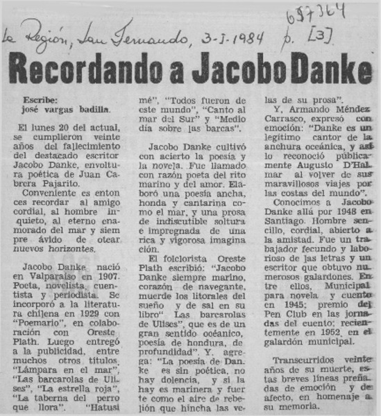 Recordando a Jacobo Danke [artículo] José Vargas Badilla.