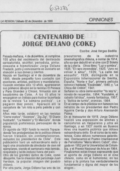 Centenario de Jorge Délano (Coke) [artículo] José Vargas Badilla.