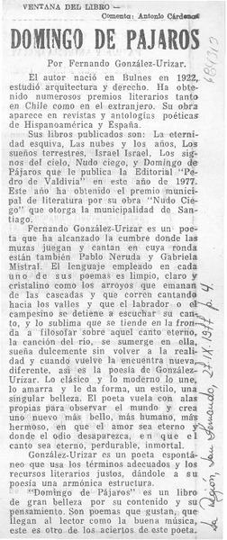Autores chilenos - González-Urizar, Fernando - Domingo de pájaros