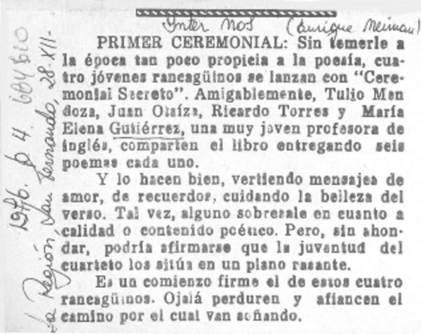 Voces del silencio" de Mercedes Fuenzalida [artículo] Adolfo Simpson T.