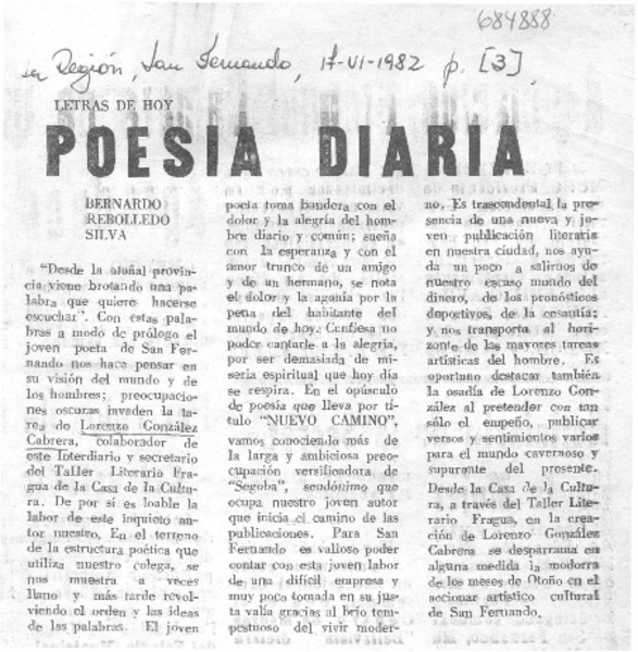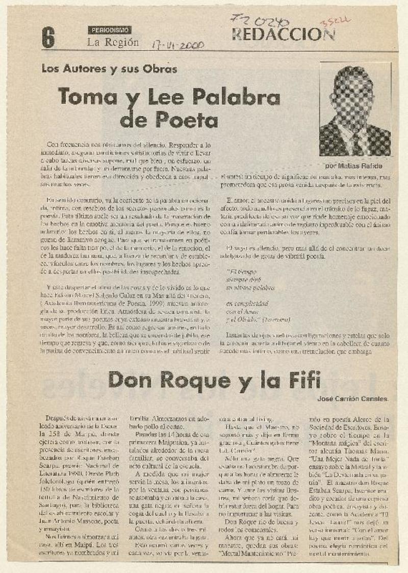 Toma y lee palabra de poeta [artículo] Matías Rafide.