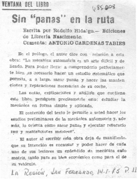 Sin "panas" en la ruta [artículo] Antonio Cárdenas Tabies.