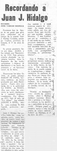 Recordando a Juan J. Hidalgo [artículo] José Vargas Badilla.