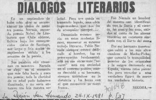Agosto y Neruda, profetas de la vida [artículo] Hernán Cabrera Baeza.