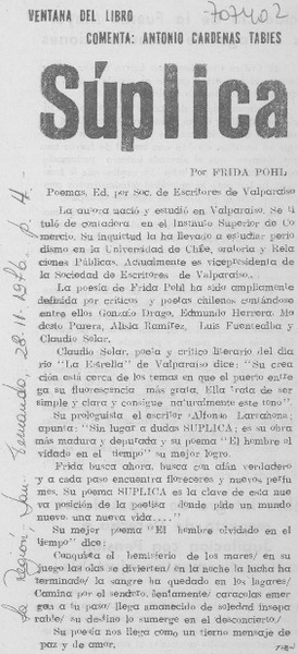 Súplica [artículo] Antonio Cárdenas Tabies.