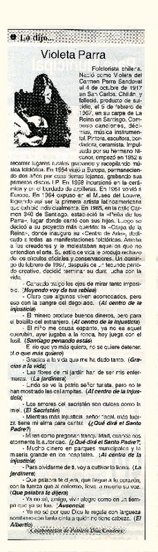 Violeta Parra. [artículo]Patiicio Díaz Coudray.