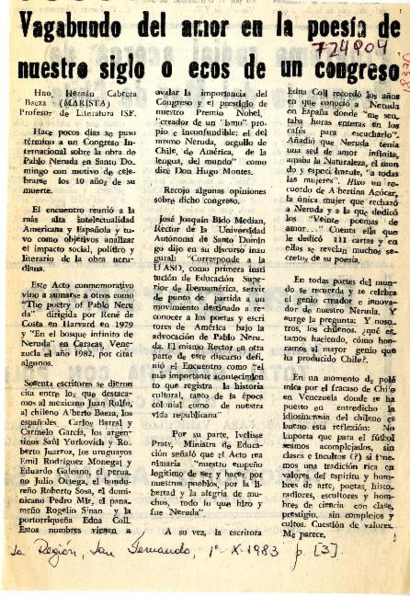 Vagabundo del amor en la poesía de nuestro siglo o ecos de un congreso [artículo] Hernán Cabrera Baeza.