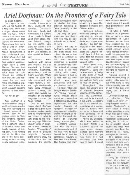 Ariel Dorfman, on the frontier of a fairy tale [artículo] Lake Sagaris.
