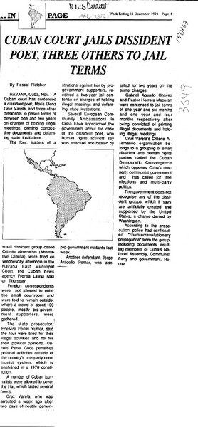 Cuban court jails dissident poet, three others to jail terms [artículo] Pascal Fletcher.