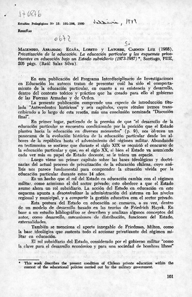 Privatización de la educación [artículo] Raúl Salas Silva.