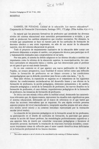Gabriel de Pujadas, "Calidad de la educación" [artículo] Elba Ardiles A.