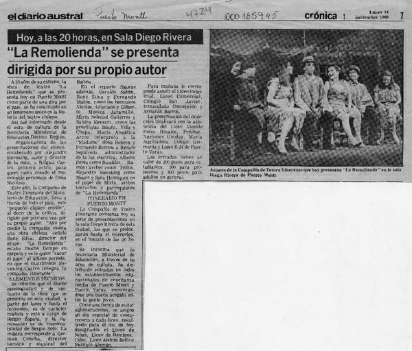 "La Remolienda" se presenta dirigida por su propio autor [artículo].