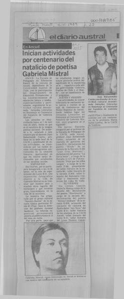 Con variado programa recuerdan nacimiento de Gabriela Mistral [artículo].