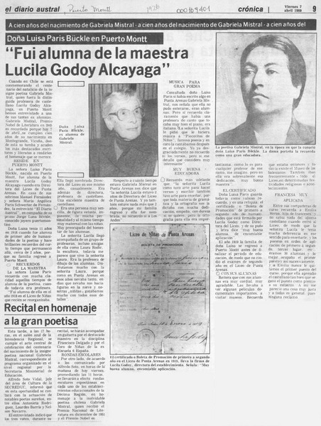 "Fui alumna de la maestra Lucila Godoy Alcayaga" [artículo].