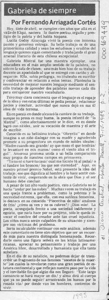 Gabriela de siempre [artículo] Fernando Arriagada Cortés.