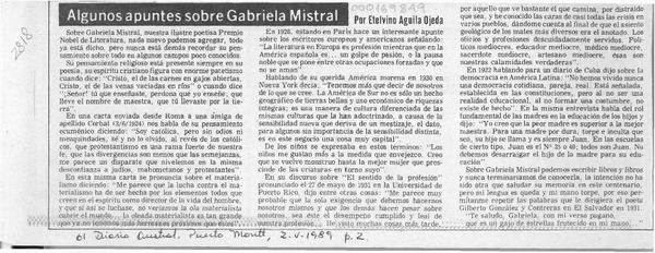 Algunos apuntes sobre Gabriela Mistral [artículo] Etelvino Aguila Ojeda.