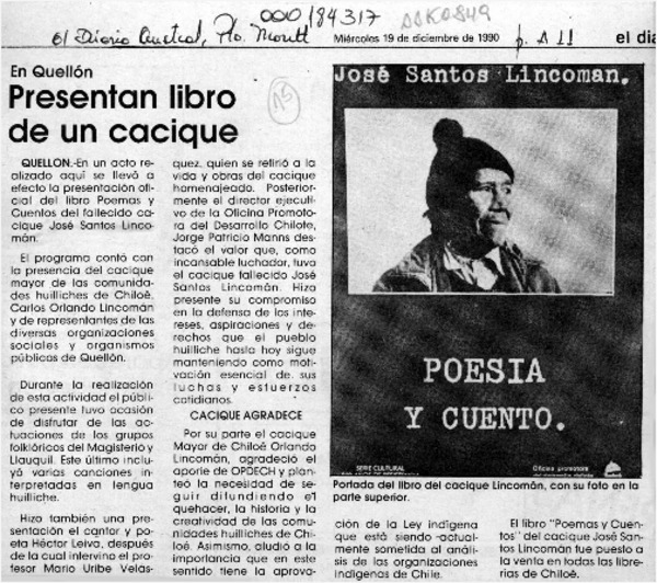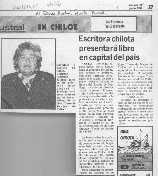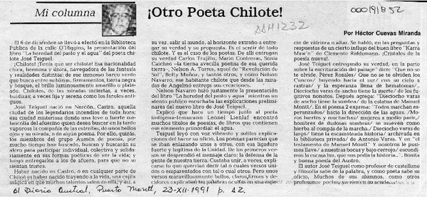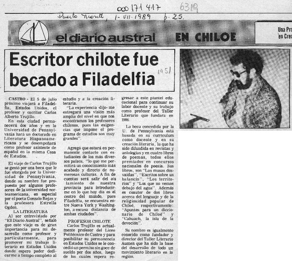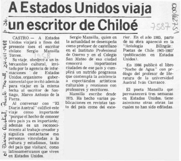 A Estados Unidos viaja un escritor de Chiloé [artículo].