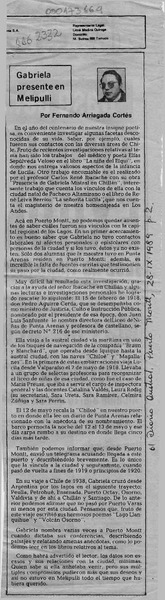 Gabriela presente en Melipulli [artículo] Fernando Arriagada Cortés.