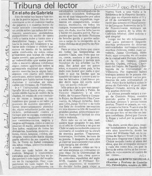 En el año de Gabriela [artículo] Carlos Alberto Trujillo.