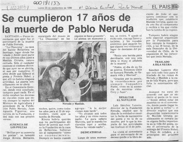 Se cumplieron 17 años de la muerte de Pablo Neruda [artículo].