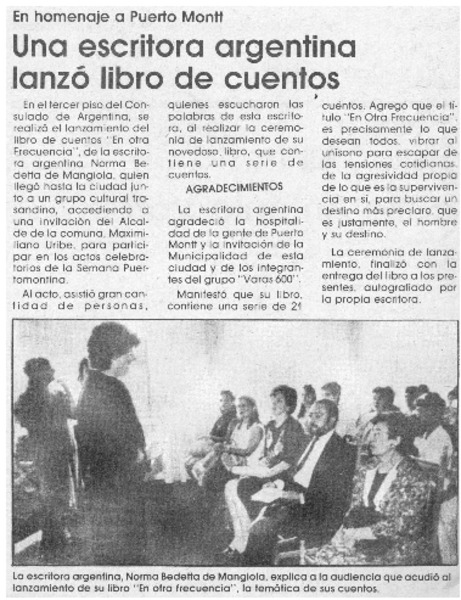 Una Escritora argentina lanzó libro de cuentos [artículo].
