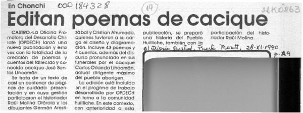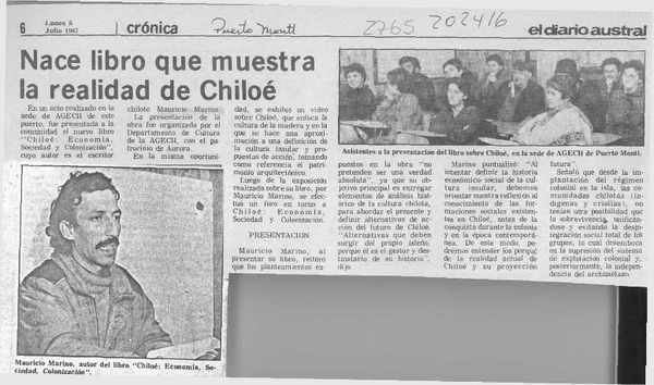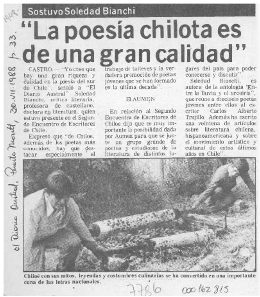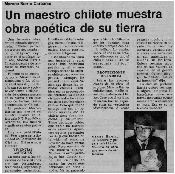 Un Maestro chilote muestra obra poética de su tierra [artículo].