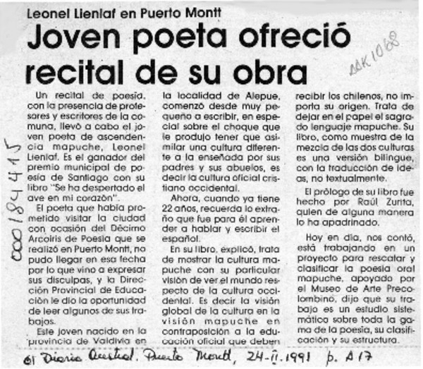 Un poeta mapuche [artículo] Antonieta Rodríguez París.