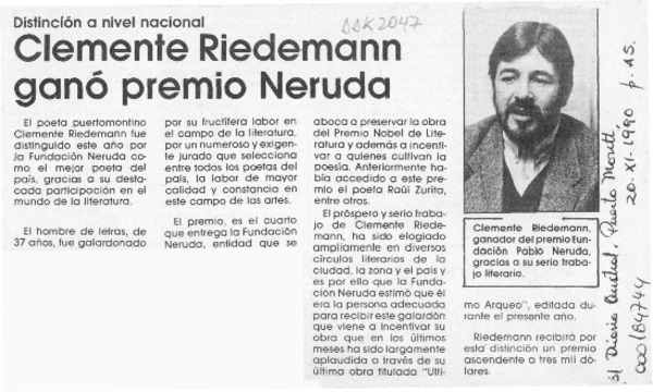 Carlos Trujillo, Premio Neruda 91 [artículo] Mario Contreras Vega.