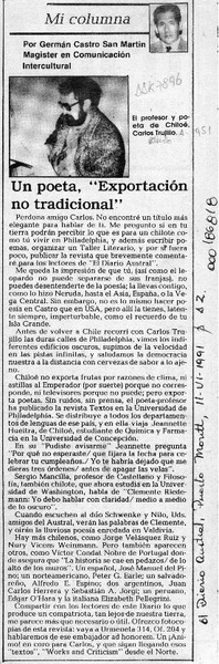 Un poeta, "exportación no tradicional" [artículo] Germán Castro San Martín.