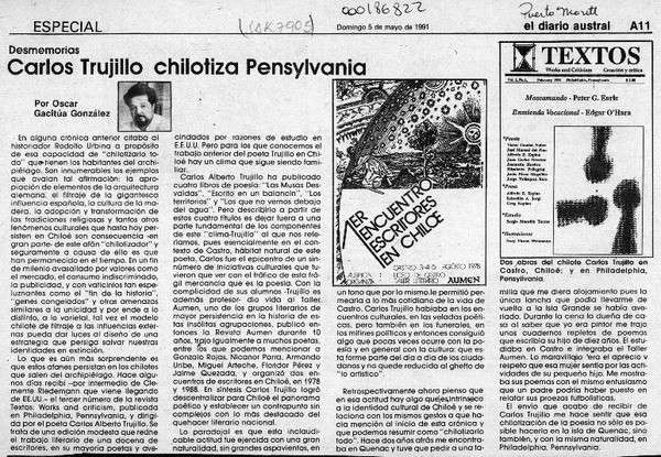 Carlos Trujillo chilotiza Pensylvania [artículo] Oscar Gacitúa González.