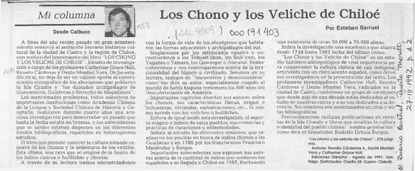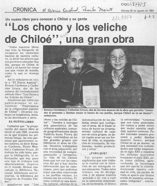 "Los Chono y los Veliche de Chiloé", una gran obra [artículo].