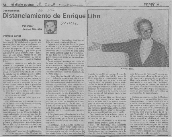 Distanciamiento de Enrique Lihn [artículo] Oscar Gacitúa González.