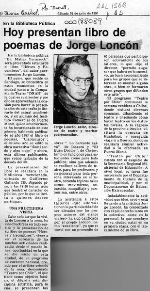 Poeta osornino presenta libro en el Diego Rivera [artículo].
