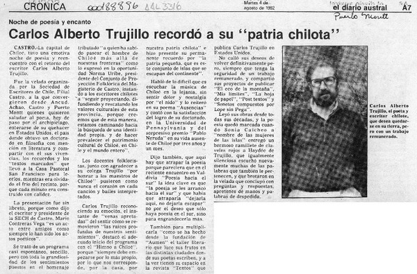 Carlos Alberto Trujillo recordó a su "patria chilota" [artículo].